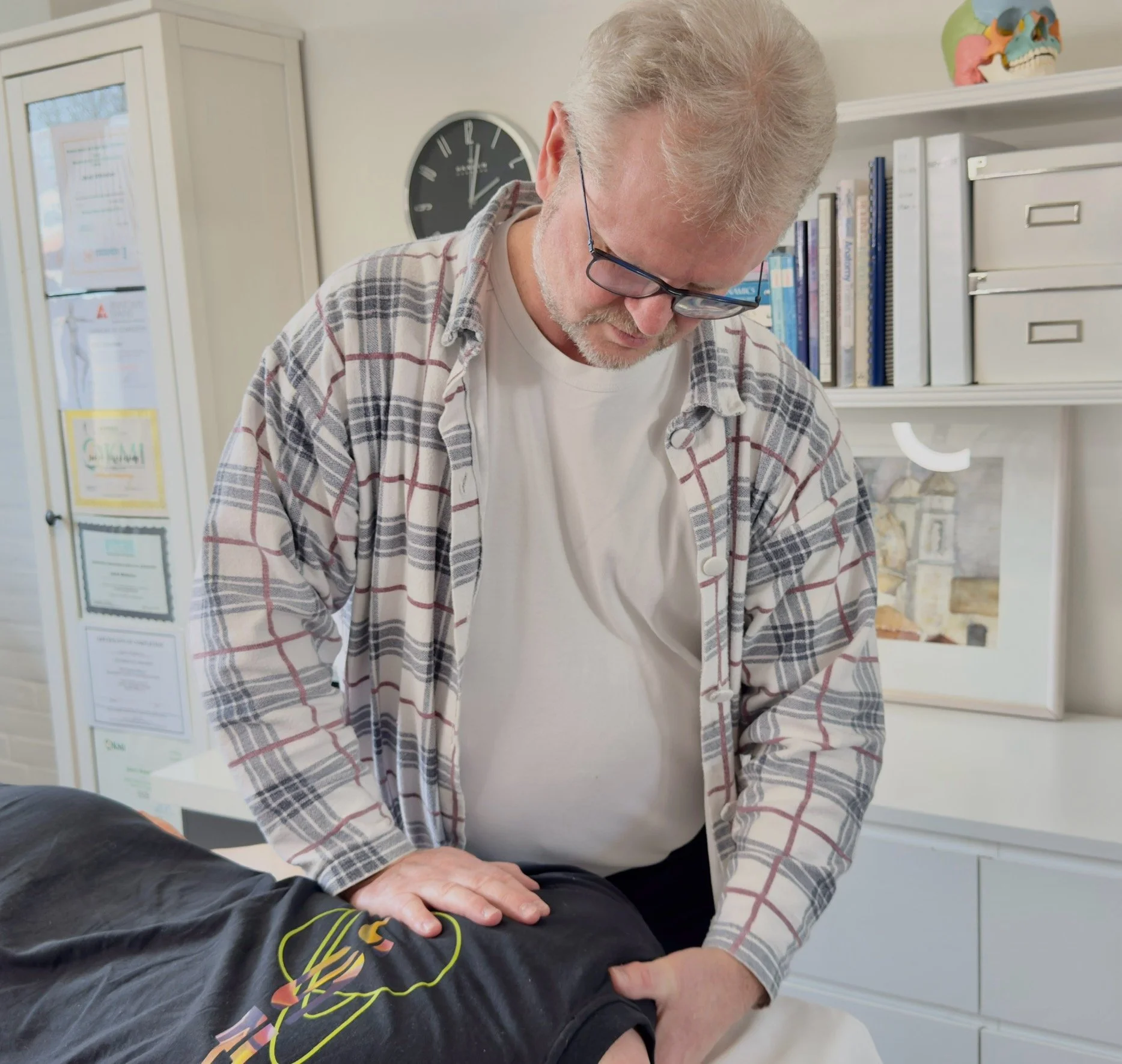 Jeg tjekker for relevante symptomer og kigger på om ryggen kan bevæge sig optimalt, samt tjekker de omkringliggende led og væv, der kan påvirke smerterne i ryggen. Jeg undersøger ligeledes omkring organerne, da et påvirket organsystem kan medvirke til smerter i ryggen. Jeg kan også finde på at undersøge fordøjelsen, kost, livsstilsvaner og stressniveauet, da det har stor indflydelse på kroppen og oplevelsen af smerter.